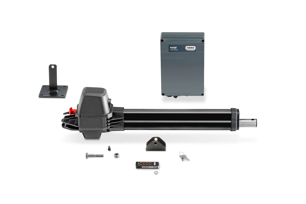 - Les deux moteurs sont conçus pour une largeur d'environ 2,5 m et un poids maximal de 300 kg par vantail.